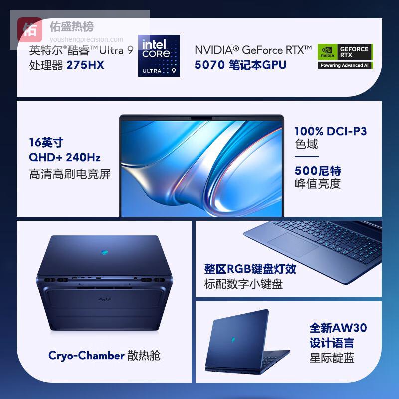 第七款:外星人16X游戏本U9 RTX5070 32G 2TB