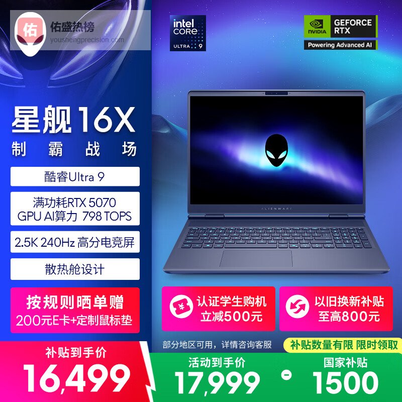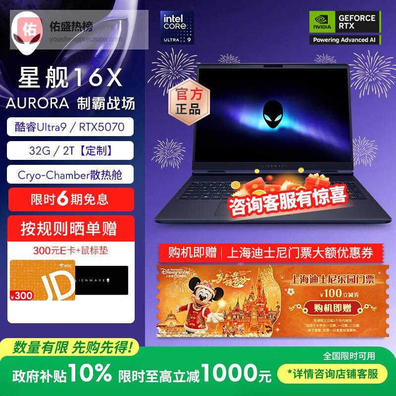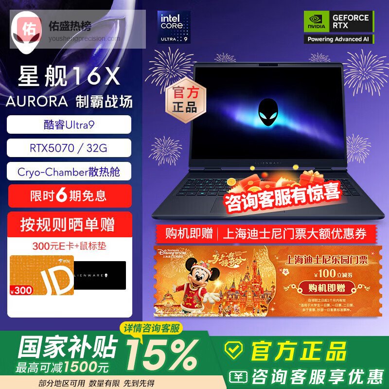 【京东自营】外星人游戏本国家补贴星舰16X16英寸高性能笔记本电脑酷睿Ultra95070显卡32G¥