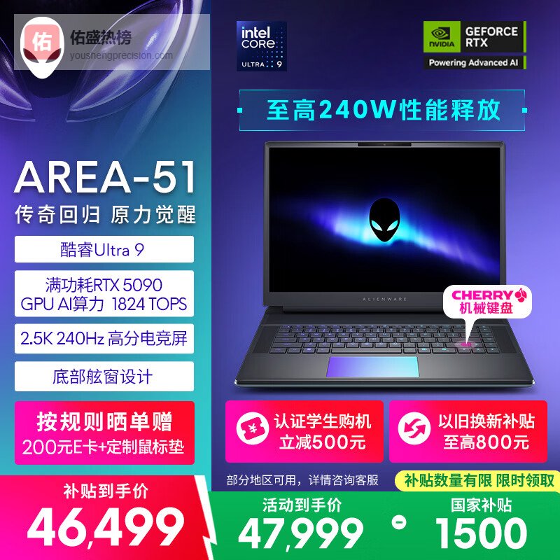 【京东自营】外星人游戏本国家补贴AREA-5118英寸高性能笔记本电脑5090显卡酷睿Ultra93¥