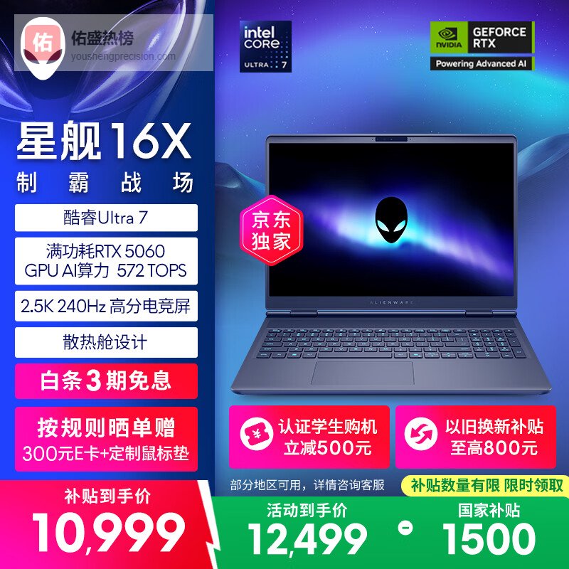【京东自营】外星人游戏本国家补贴星舰16X16英寸高性能笔记本电脑酷睿Ultra95060显卡32G¥