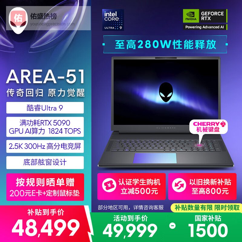 第九款:外星人游戏本AREA-51 RTX5090 Ultra 18寸 32G 2T