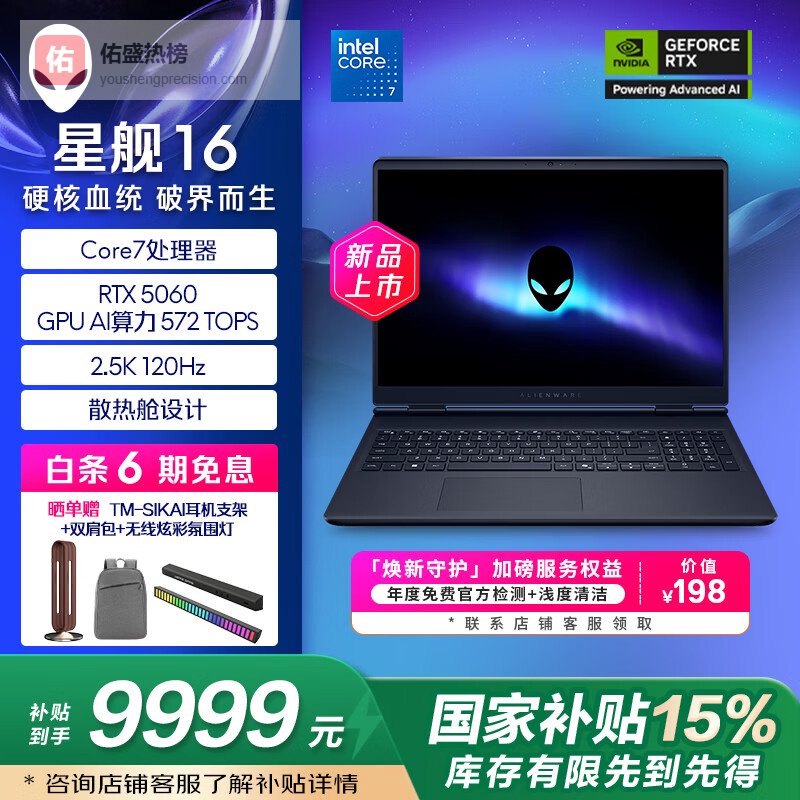 【京东自营】外星人游戏本国家补贴星舰16X16英寸高性能笔记本电脑酷睿Ultra75060显卡16G¥