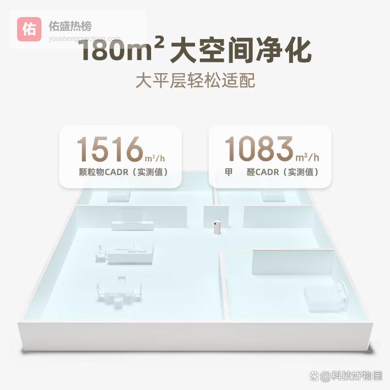 对于大空间使用者,这款净化器展示了其卓越的性能,达到了430m^3/h的气态CADR和634m^3/h的固态CADR,确保在76㎡的房间内也能保持空气的清新。无论是客厅还是办公室,都能轻松应对每个角落的空气质量。同时,静音设计带来的32dB低噪音保证了工作时的宁静,有助于提升使用体验。
