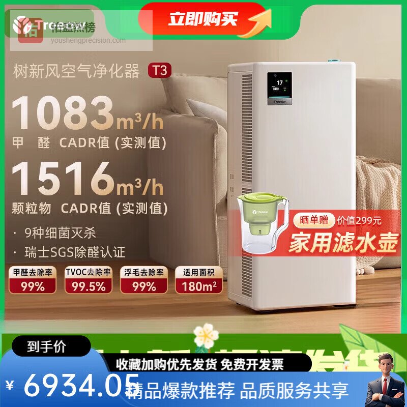 树新风甄选树新风高端空气净化器家用宠物除甲醛菌猫毛除异味T2¥