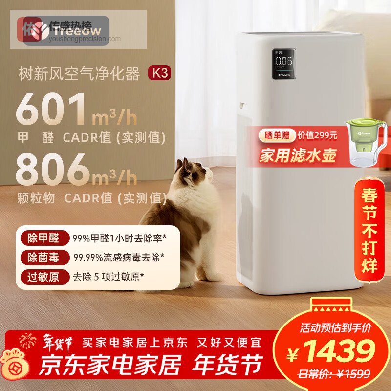 树新风树新风T3空气净化器家用宠物除甲醛菌猫毛除异味净化机Treeow树新风T3¥