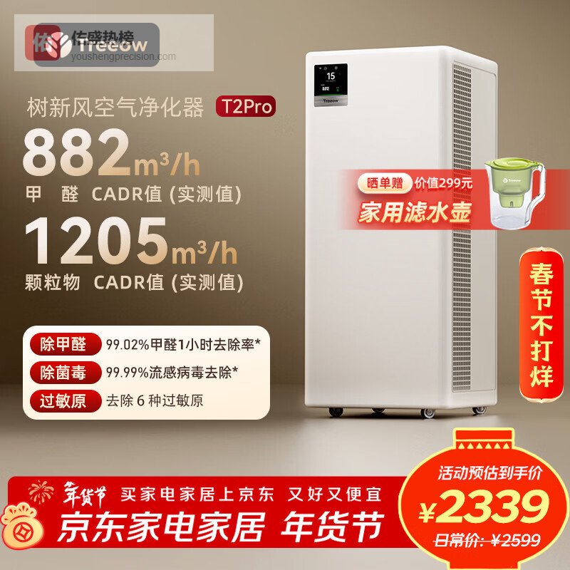 【京东自营】树新风空气净化器除甲醛异味除菌除过敏认证家用宠物大空间全效T2pro净化器¥