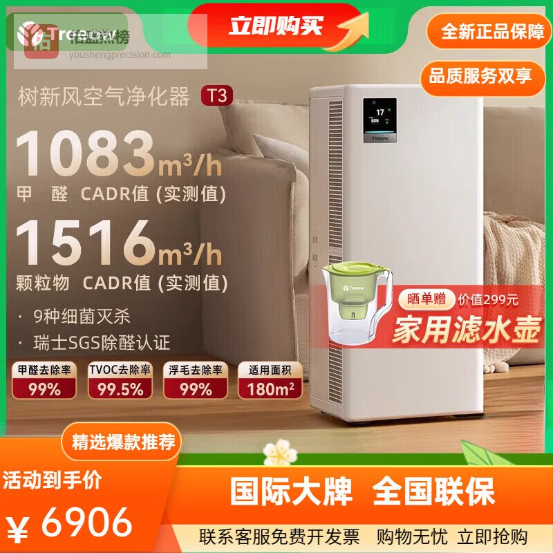 树新风空气净化器t3空气净化器家用宠物除甲醛除异味净化机SN4825¥
