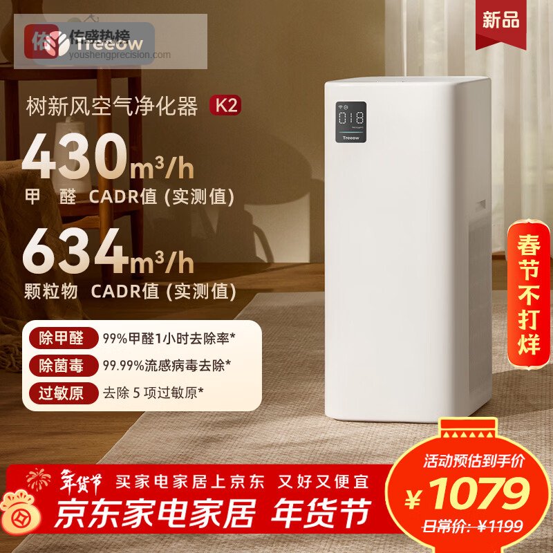 【京东自营】树新风空气净化器除甲醛异味除过敏认证家用宠物大空间全效净化器K2¥