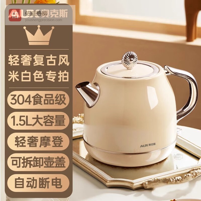 奥克斯电热水壶304不锈钢烧水壶欧式复古大容量保温电水壶家用耐用自动断电 1.5L 典雅白¥
