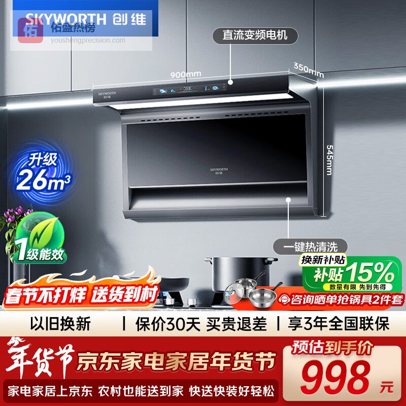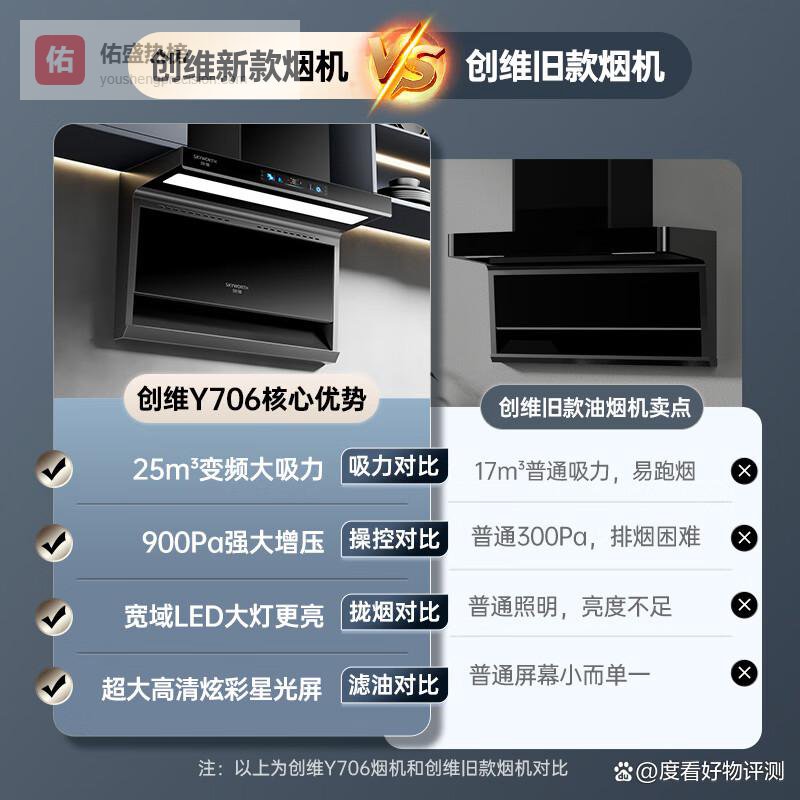 创维Y706采用了目前很受欢迎的“7字型”顶侧双吸结构,兼具了顶吸的笼烟范围和侧吸的近距离吸捕优势。这种结构能在油烟产生的不同阶段有效吸附,减少逃逸。一级能效意味着更节能省电。它同样配备了自清洁功能,帮助用户解决内部油污清洁的难题。以旧换新服务也为老旧厨房的电器更新提供了便利。这款产品适合那些纠结于顶吸和侧吸之间,希望获得更全面吸油烟效果的家庭。