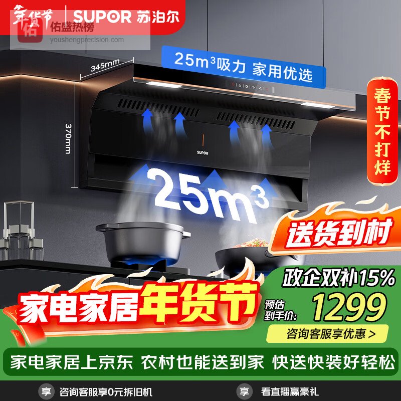 苏泊尔(SUPOR)【齐平橱柜DE15】抽吸排油烟机家用大吸力25m³顶侧双吸挥手智控自清洁以旧换新¥