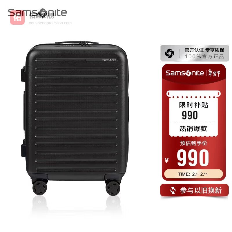 【京东自营】新秀丽行李箱20英寸拉杆箱欧洲设计条纹旅行箱包密码登机箱黑色KF1¥