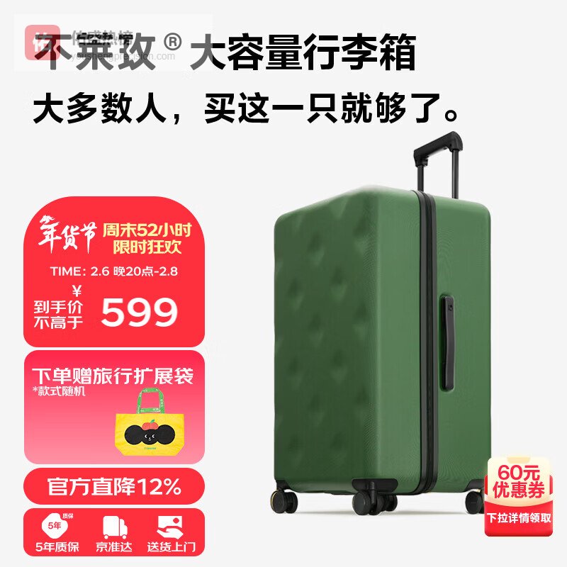 【京东自营】不莱玫行李箱拉杆箱旅行箱子大容量女学生男出国托运密码箱26英寸绿色¥