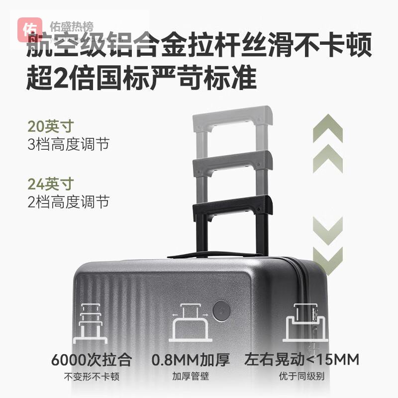 顺滑的出行体验从拉杆开始,这款行李箱搭载了航空级铝合金拉杆,经过超2倍国标标准测试,确保在各种高度间自由调节。阳极氧化工艺的表面处理,不仅耐磨,还防锈,让拉杆在使用过程中始终保持如新,带来绝佳便捷感。