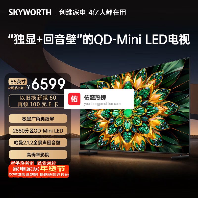 创维电视A6F Pro 85英寸 2880分区QD-Mini LED 极黑类纸屏 哈曼音效 国家补贴¥