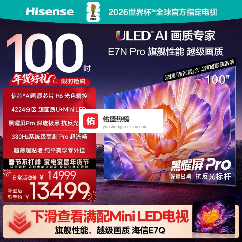 海信电视E7N Pro 100英寸 信芯芯片H6 U+MiniLED 黑曜屏Pro 330Hz高刷帝瓦雷音响AI智能98/100¥