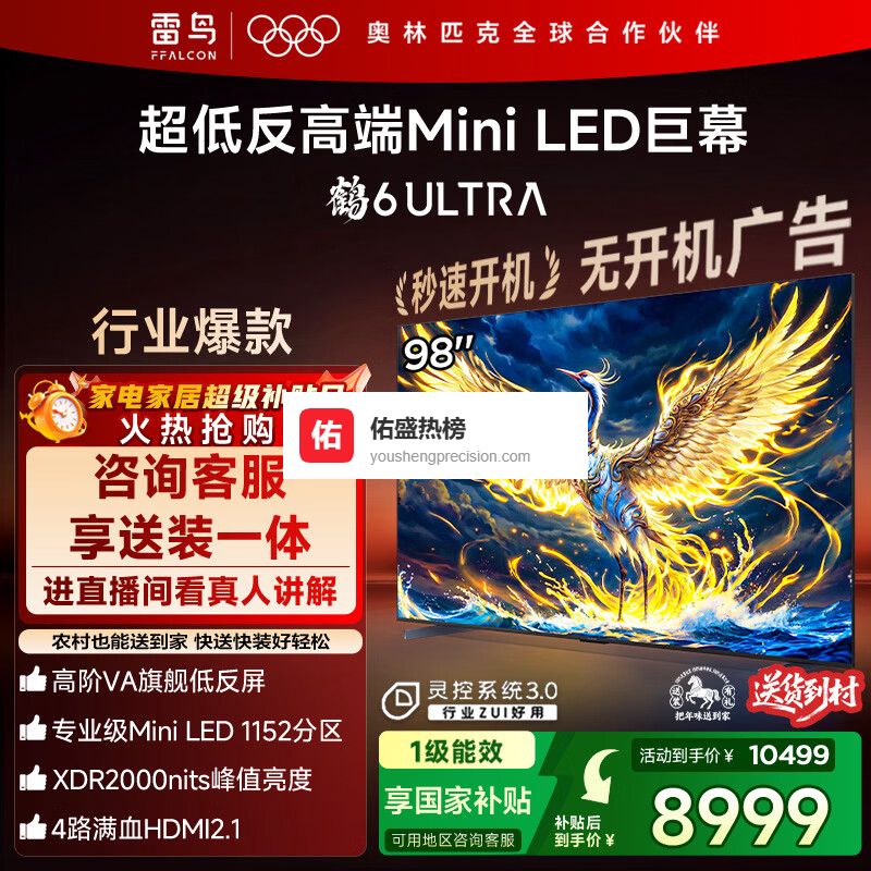FFALCON雷鸟电视 98鹤6 Ultra 25款 98英寸 MiniLED 高阶VA 家电国家补贴 98/100英寸电视98S595C Ultra¥