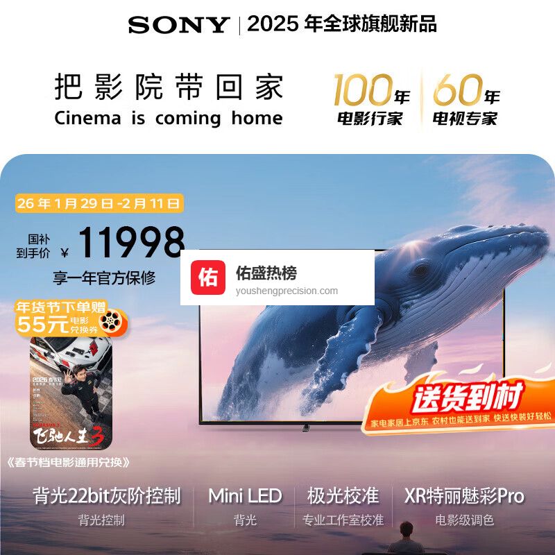 索尼(SONY)高端款 5系【京东独家】 K-85XR51Z 85英寸 MiniLed 【固定挂架送装一体】 64G 国家补贴 电视¥
