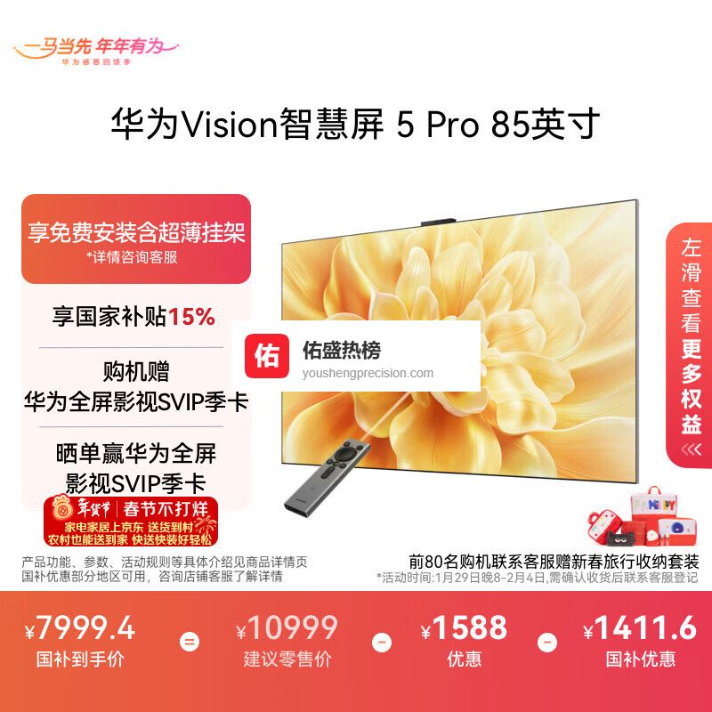 华为Vision智慧屏 5 Pro 85英寸 288Hz SuperMiniLED 一级能效国家补贴超薄液晶平板电视机HD85NEWN¥