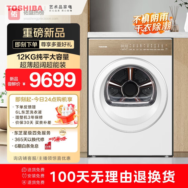 【京东自营】东芝热泵烘干机家用【全变频DH-12T25BW】纯平全嵌12公斤大容量蒸汽精护以旧换新【¥