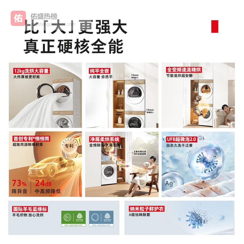 推荐理由:12KG大容量、全自动操作、变频热泵烘干