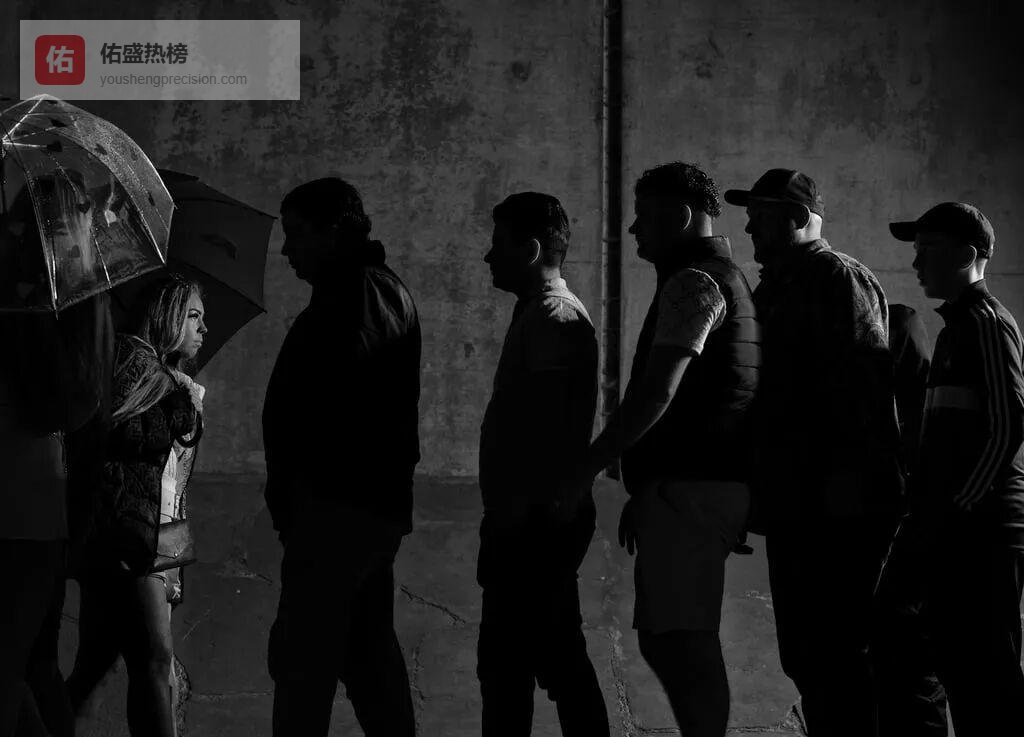 第二段,他把洞穴灯光调暗,只留一束红光打在墙上的电视屏幕。画面里,深夜新闻播报地震、疫情、裁员,“实时”却像被剪辑过的幻影。费舍尔让模特戴上VR眼镜,假装在“元宇宙”里找到新工作,可摘下头显,他们依旧回到破败的地下室。虚实边界被刻意揉碎——“如果一切都能被算法模拟,那么真实究竟剩下什么?”