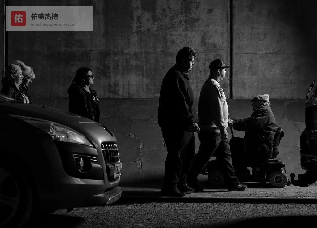 第一段,他拍吉普赛、游民、罗姆人(GTR)社区,像庄子梦蝶般发出存在质疑:他们是被主流放逐的“影子”,还是自愿放弃“地面生活”的智者?镜头里,人们围坐取暖、交换旧物,表面破败,却自给自足。费舍尔把相机贴在地上,视角与洞壁齐平,让观众也蹲下来,像被困在墙上的“囚徒”。