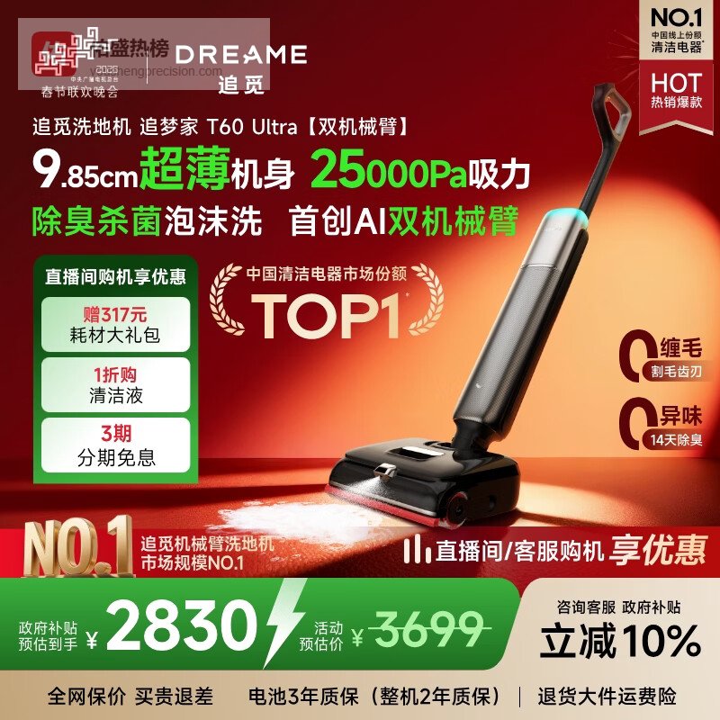 【京东自营】追觅春晚同款洗地机追梦家T60Ultra【双机械臂速干】洗拖吸拖一体机自动清洗家用拖地洗¥