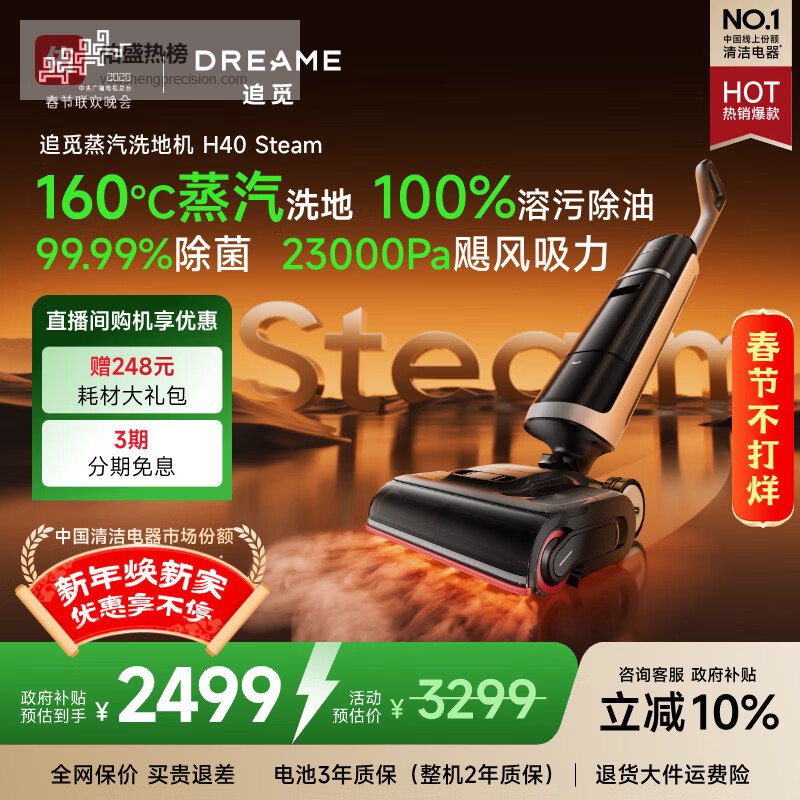 【京东自营】追觅春晚同款蒸汽洗地机H40Steam【160℃蒸汽洗洗地】吸拖洗一体机自动清洗京东自营¥