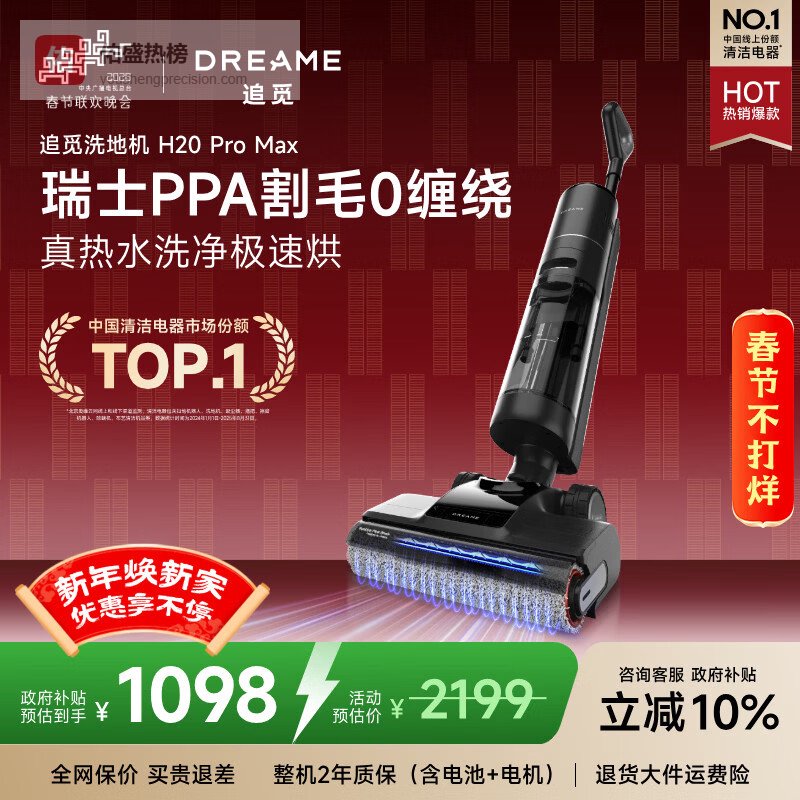 【京东自营】追觅春晚同款家用洗地机H20ProMax【瑞士PPA割毛齿刃】65℃高温除菌吸尘器拖地洗¥