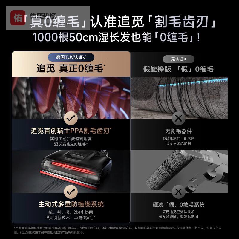 防缠绕技术:采用双重防缠毛设计,避免毛发缠绕,使清洁更加便捷,无需频繁停下。