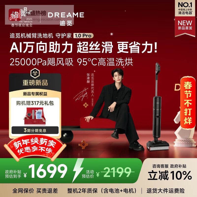 【京东自营】追觅春晚同款守护家1.0洗地机【升级25000Pa飓风吸力】5分钟95℃烘干除菌洗吸拖智¥