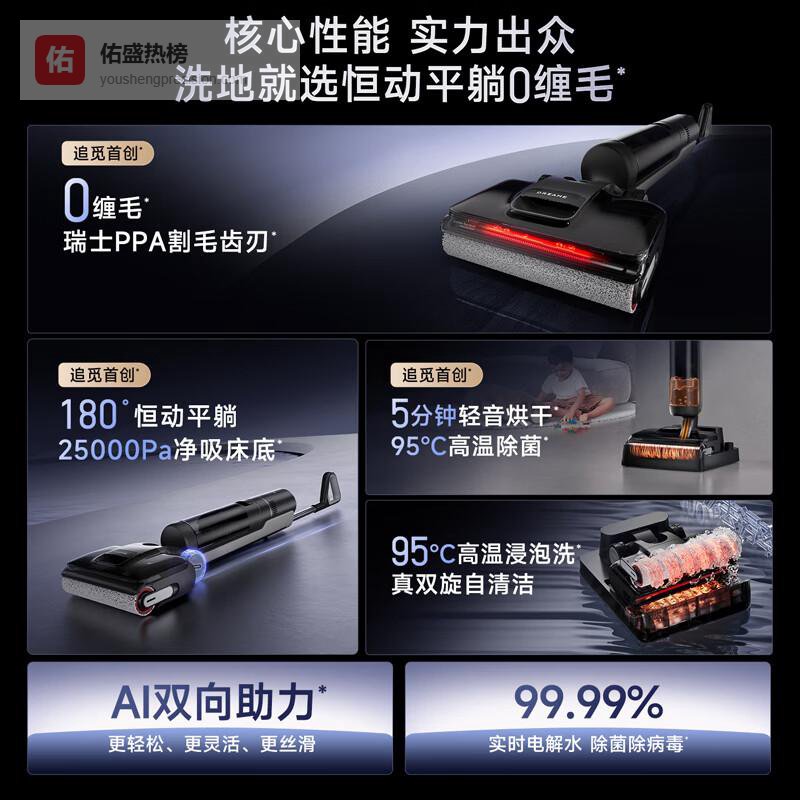 【京东自营】追觅春晚同款洗地机H20Ultra旋锋版超人气款【瑞士PPA防缠毛】180°平躺洗拖吸拖¥