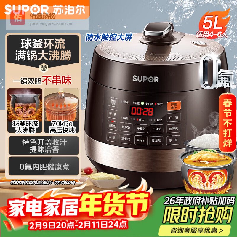 苏泊尔(SUPOR)【厨房好年货】全自动智能预约电压力锅5L触控家用煲汤球釜内胆SY-50YC9001Q电饭煲高压锅4-6人¥