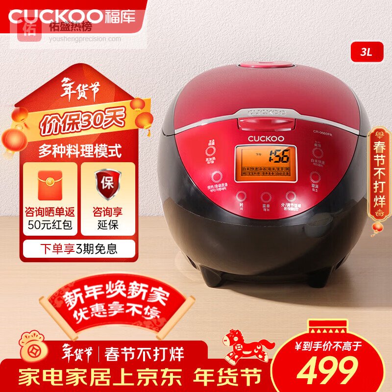 福库(CUCKOO)电饭煲韩国品牌1-4个人家用小型迷你电饭锅3升智能预约定时多功能自动洗涤不粘内胆饭煲3L 1-4人份 0660FR 3L¥