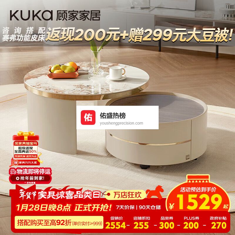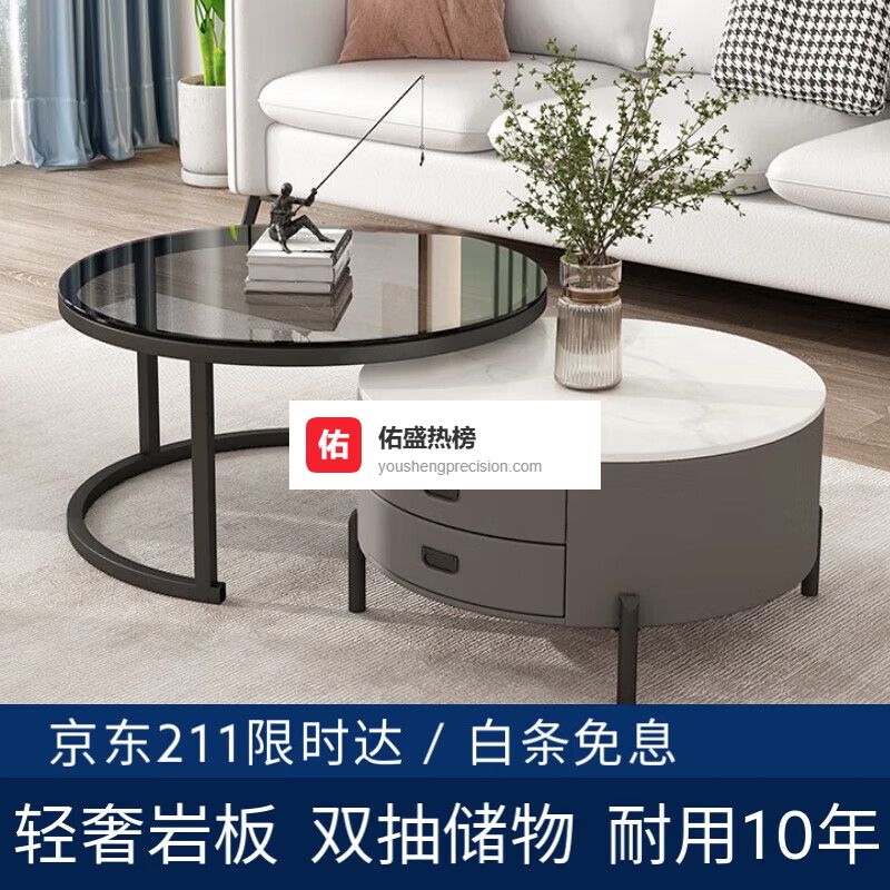 推荐第9款:酷林KULIN茶几 岩板钢化玻璃台面圆形抽屉组合岩板茶几