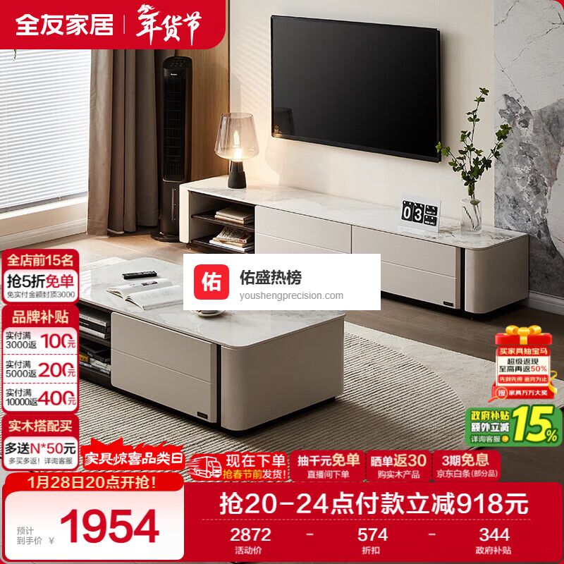 全友家居 岩板茶几意式轻奢客厅家用边桌电视柜组合收纳储物置物柜子¥