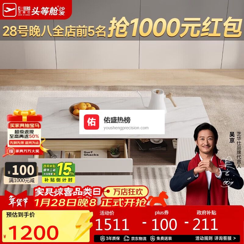 芝华仕的岩板茶几往往带有极强的“科技美学”属性,不仅选材精良,更在功能性上有所延伸。其产品在消费者心中的品牌溢价极高,但实际售价却非常亲民。凭借遍布全国的门店网络和五星级的售后服务,芝华仕的岩板系列产品在各种大促节点常年霸榜,是提升客厅档次的高效方案。