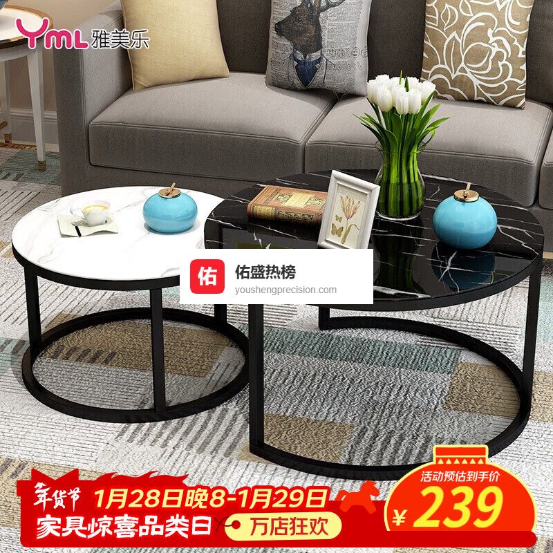 雅美乐圆形组合茶几简约玻璃仿岩板纹北欧极简小户型客厅茶桌黑白¥