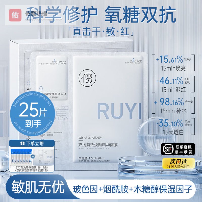 第八款:儒意双抗377面膜25片装补水美白抗衰老