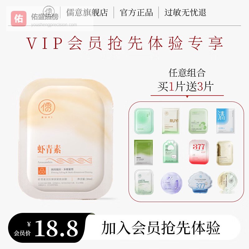 儒意面膜哪个系列好?哪款型号性价比高?第一款:儒意虾青素补水面膜 1片