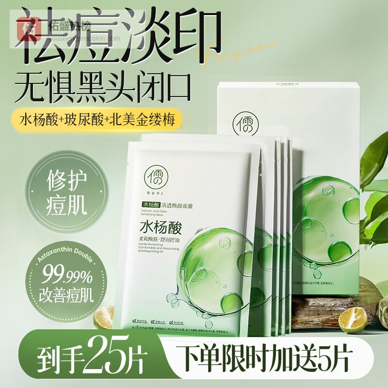 【京东自营】儒意水杨酸面膜25片祛痘淡化痘印收缩毛孔痘痘修护女男士补水青少年¥