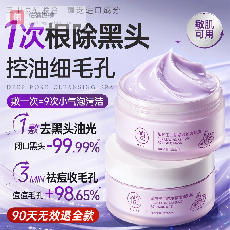 【京东自营】儒意紫苏壬二酸清洁泥膜150g面膜深层去黑头收缩毛孔祛痘男女护肤品¥