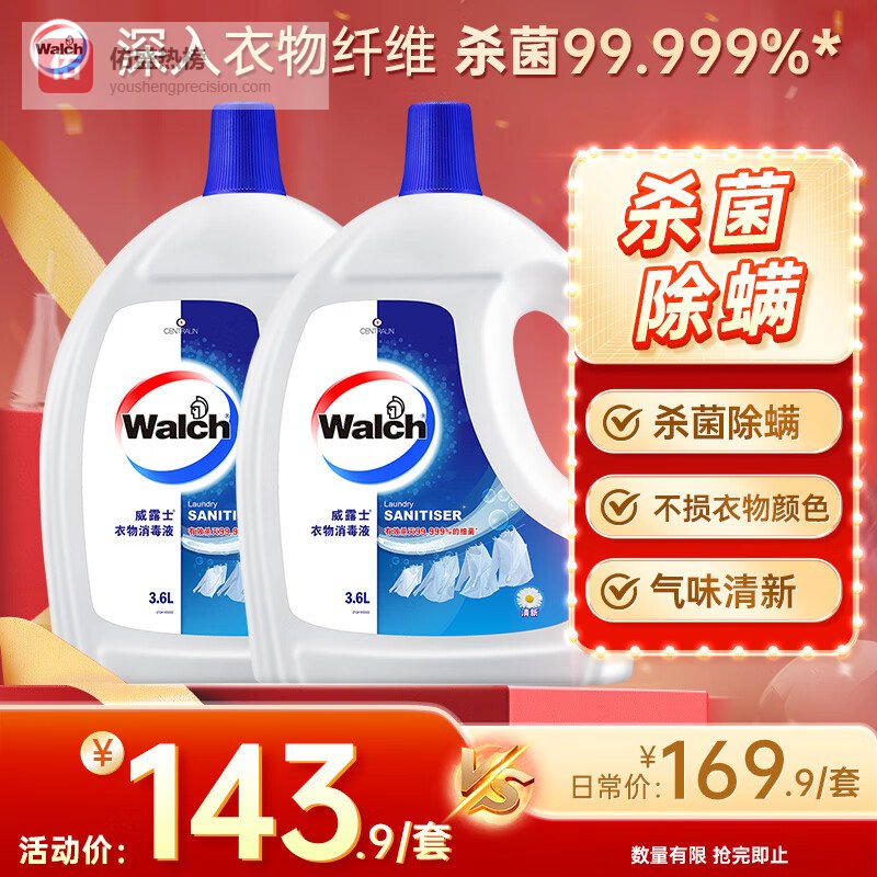 威露士衣物消毒液清新3.6L*2 杀菌99.9%除螨内衣衣物除菌液 可配洗衣液¥