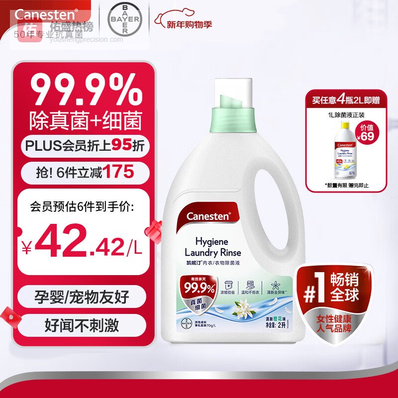 Canesten凯妮汀衣物消毒液橙花香2L/瓶 99.9%除真菌 拜耳衣物内衣除菌液¥