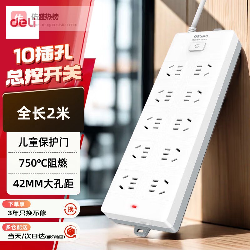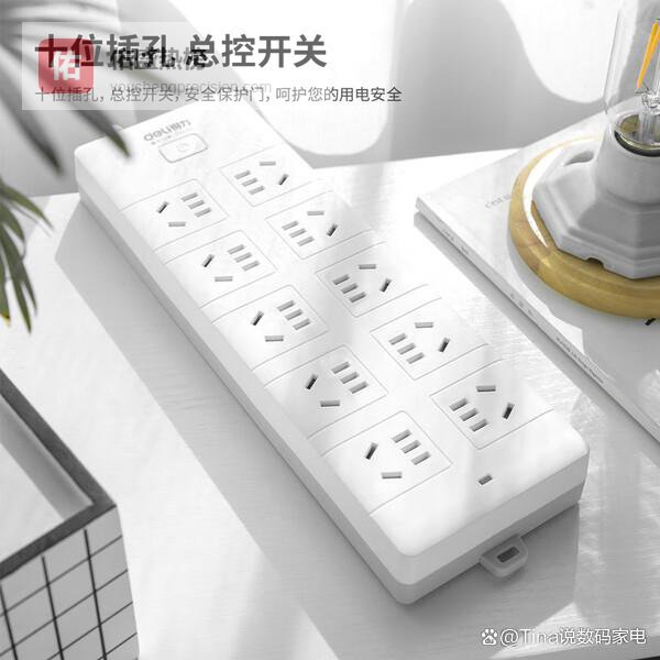 1️⃣ 插孔容量大:这款得力插座配备了10个插孔,空间够宽敞,特别适合大户型家庭或办公场所,一次性满足多台电器同时用电的需求。线长在1.6米到2米之间,使用起来也很方便,无论是插在地板还是墙面,都挺顺手。