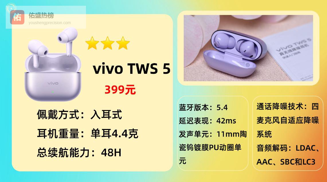 推荐品牌 7、V ivo T WS 5蓝牙耳机