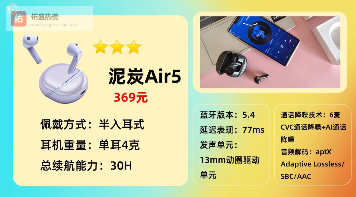 推荐品牌 3、泥 炭A ir5蓝牙耳机