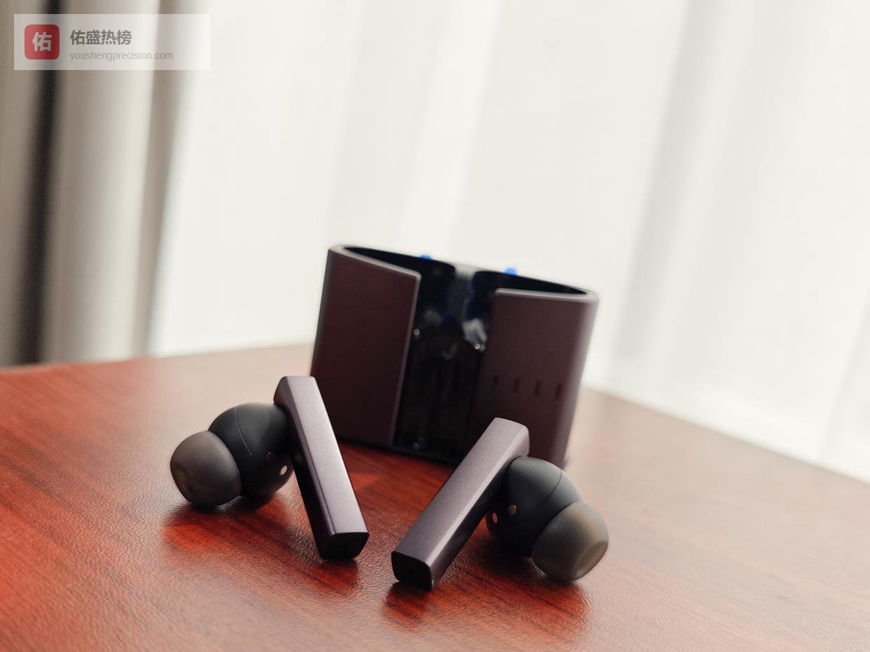 ①这款耳机灰色金属机身配合喷砂质感,视觉上比较有档次,硬朗的几何线条让整体更显力量感与科技感。相比同价位塑料外壳的耳机,它显得更有格调。耳机本体佩戴舒适度良好,长时间使用耳部没有明显压力。充电仓轻便耐磨,携带出门也比较方便。