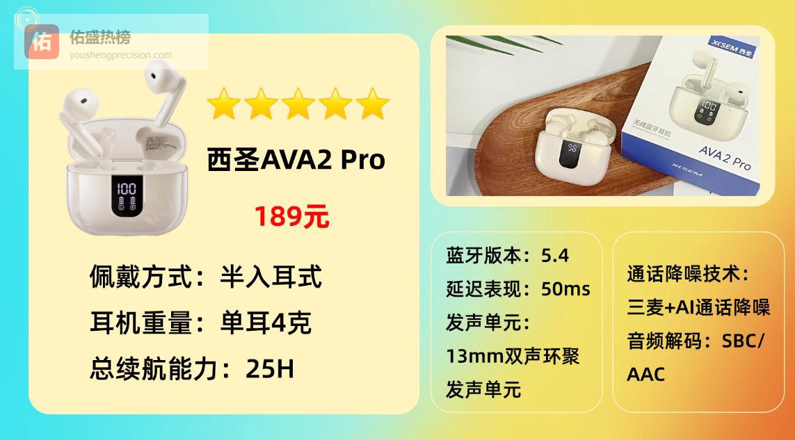 推荐品牌 1、西圣AVA2 Pro蓝牙耳机